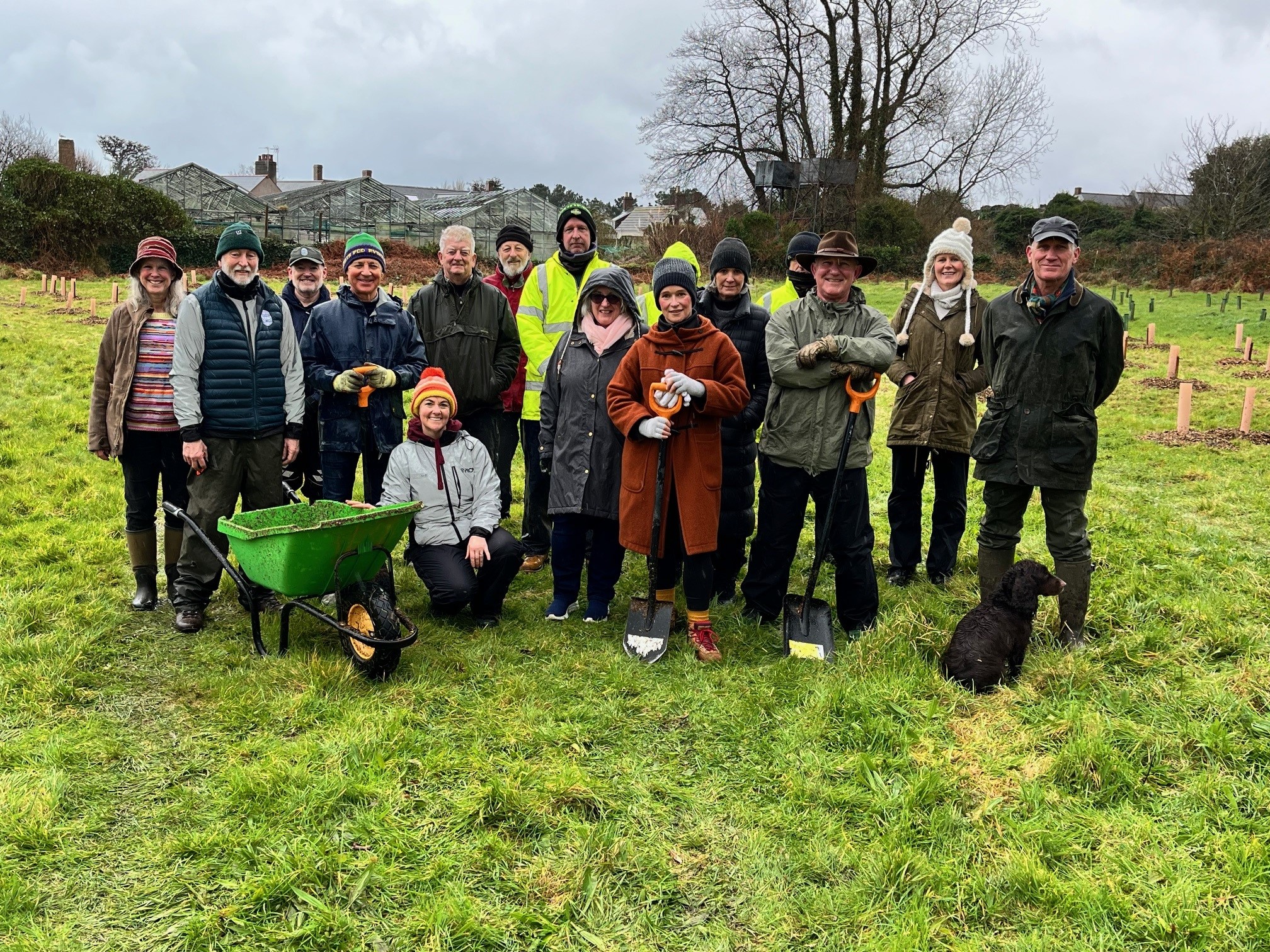 Staff from Government House joined His Excellency and members of Guernsey Trees For Life, to plant trees on a private site up in the Vale.