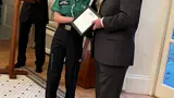 We welcome our five new Cadets for 2023-2024, pictured here at their investiture on 12 September 2023. L-R: Carmen Walsh, Girlguiding Ranger; J-P Lenormand, RYA Assistant Instructor, GST; Neave Chatting-Tonks, Chair of Guernsey Youth Forum; His Excellency; Reuben Montgomery, Sergeant Instructor, CCF Army section; Matilda Shell, St Johns Cadet; Lillie-May Hawkins, Sergeant, ACF.